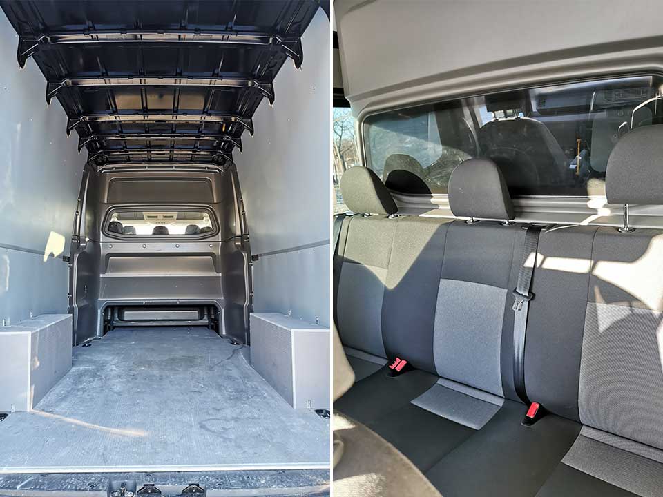 Mit dem Crafter Kasten Plus verbinden Sie den sicheren und komfortablen Personen- und Warentransport. Durch die optimierte Sitzbank und Trennwand bleibt selbst bei 7 Sitzplätzen genug Raum für Ihr Equipment oder Transportgüter.