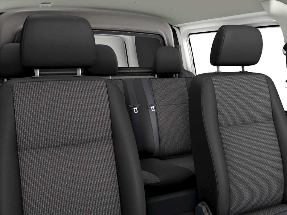 Auch beim kompakten Transporter bieten wir Ihnen eine zweite Sitzreihe und einen abgetrennten Laderaum. Zwei sauber getrennte Bereiche also.
